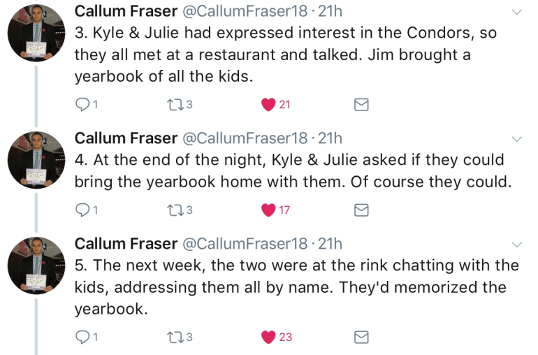 There is no doubt that Turris and his infamous gold chain was a top player for the team. However, some can argue that it was what he and his wife Julie did off the ice that will be remembered the most. Turris spent most of his off time with the Capital City Condors: “A family of ice hockey teams for those who are unable to play on any other hockey team due to a cognitive and/or physical disability” (Capital City Condors). It was only once the Turris family left Ottawa that stories began to come out about the impact he had with the Condors.