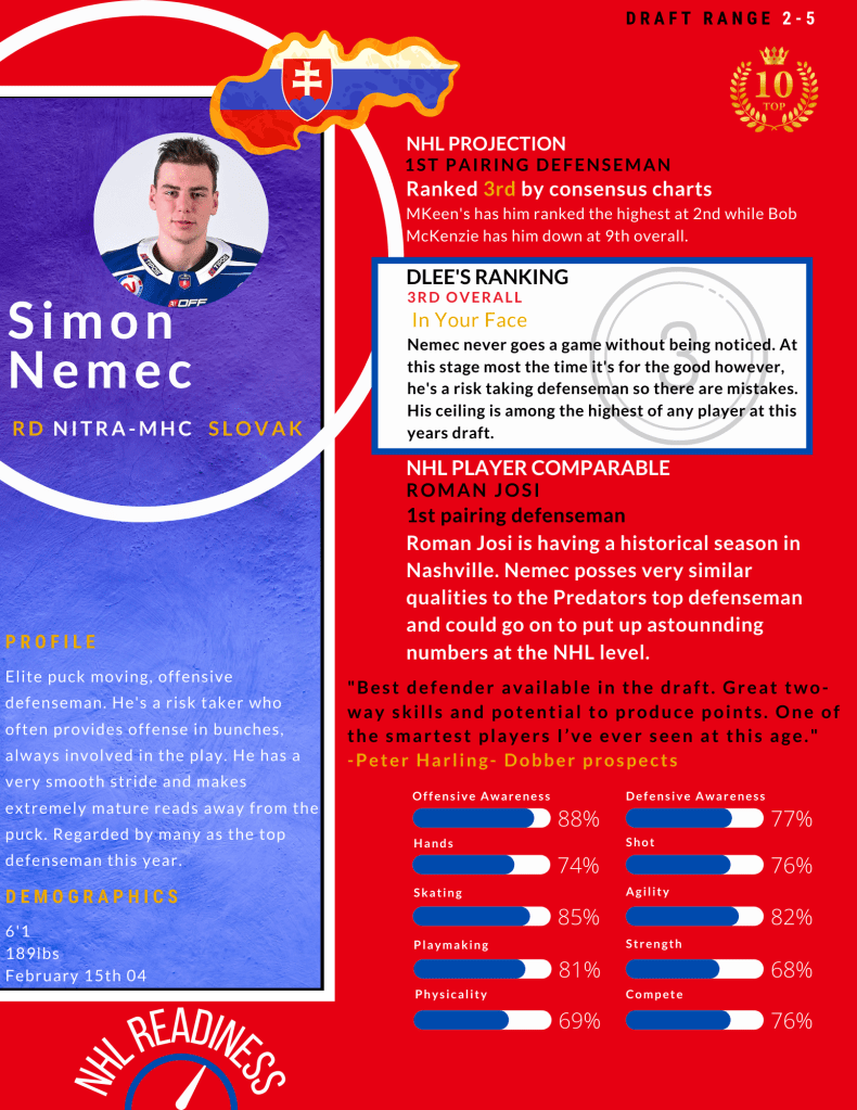Simon Nemec is quickly projecting as one of the most gifted offensive defenseman in quite some time. He possesses all the necessary skills to be an effective offensive defenseman at the next level, coupled with great gap control and exceptional reads defensively. He does take some risks offensively but they often workout in his favour.