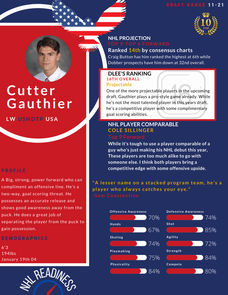 Cutter Gauthier has prototypical Sens draft pick written all over him. He’s big, physical and very projectable. You’re not going to miss if you select the power forward and the Sens have a habit of measuring safety ahead of high ceiling players.